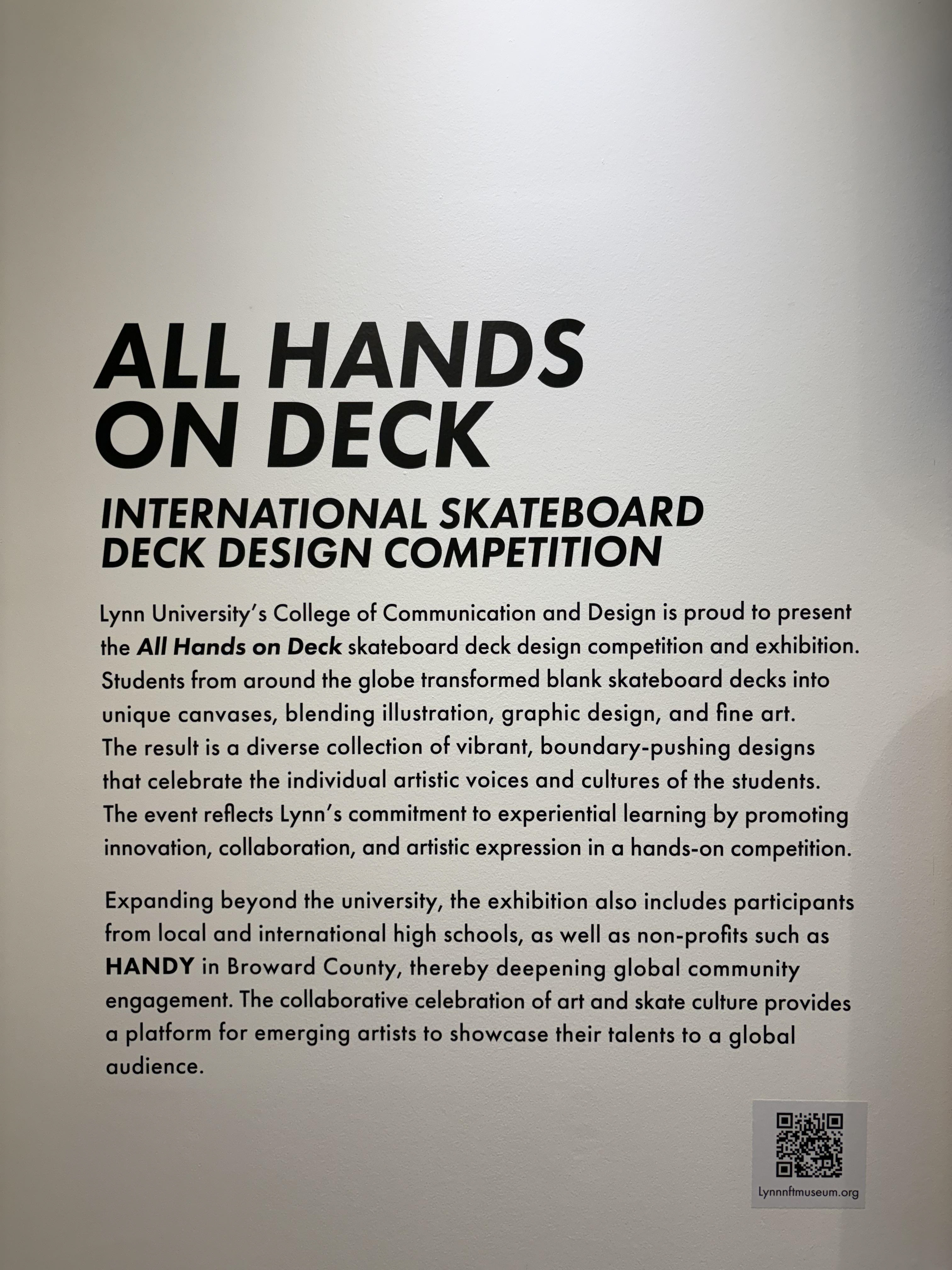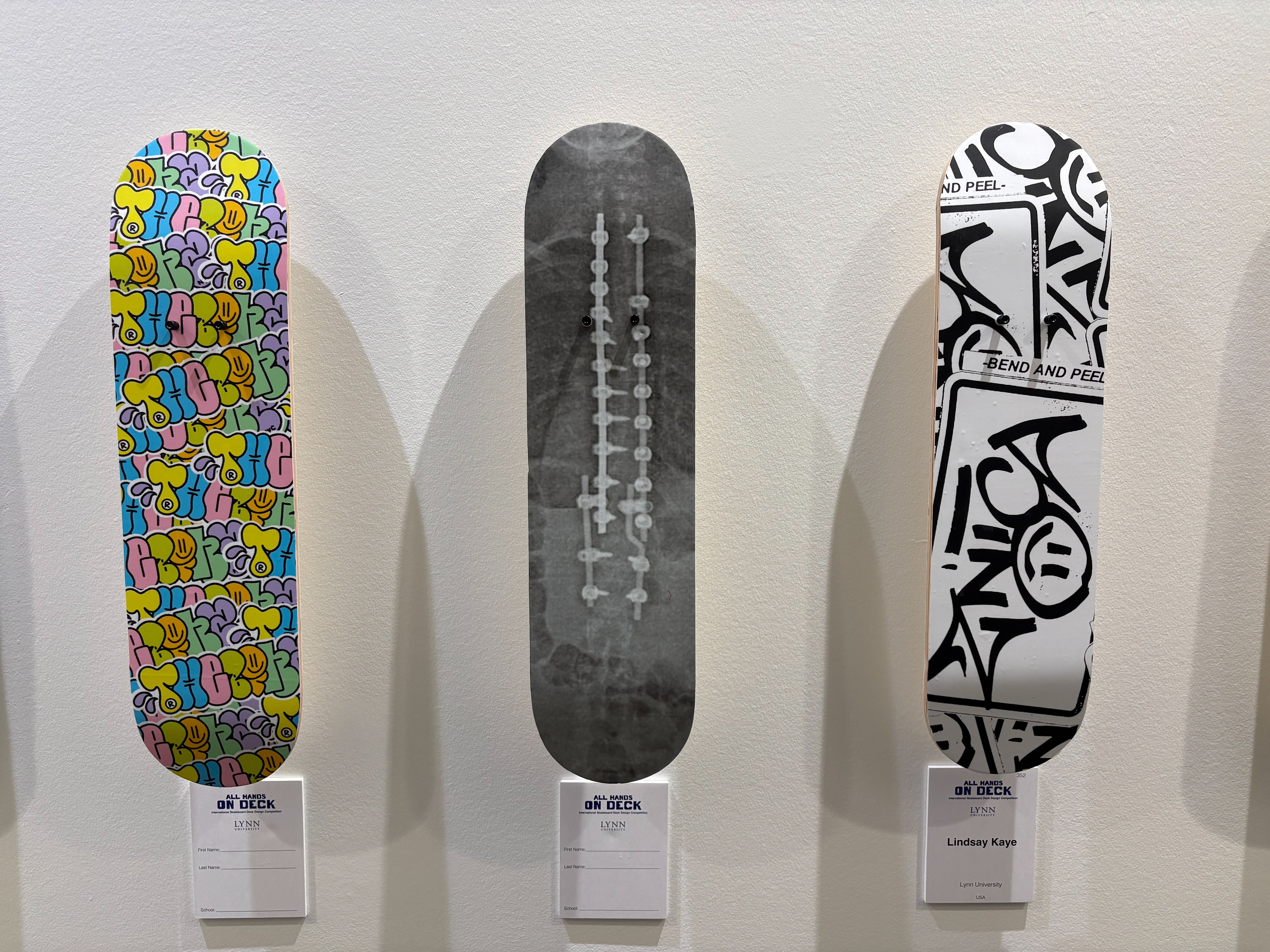 Four original skateboard decks featured in the annual exhibition.