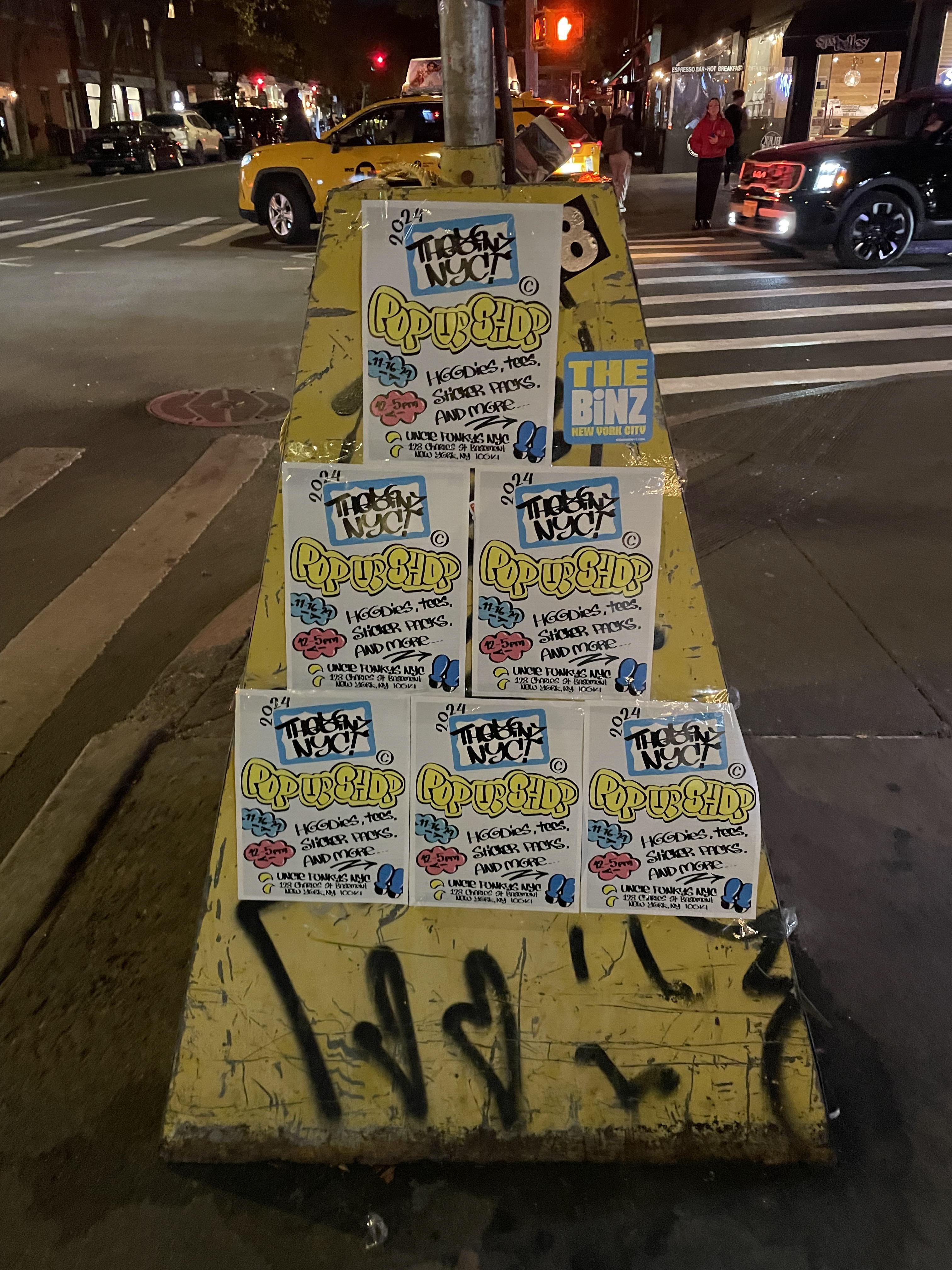 This was the first-ever pop-up shop for The Binz NYC, hosted at Uncle Funky’s Boards, a legendary skate shop in the West Village of Manhattan. I bought my very first skateboard here as a kid, so having my merchandise sold in the same space was a full-circle moment I’ll never forget. Friends, family, and customers came to show love and support. I designed a custom flyer for the event and promoted it across social media to help spread the word, by the end of the day, I had completely sold out.